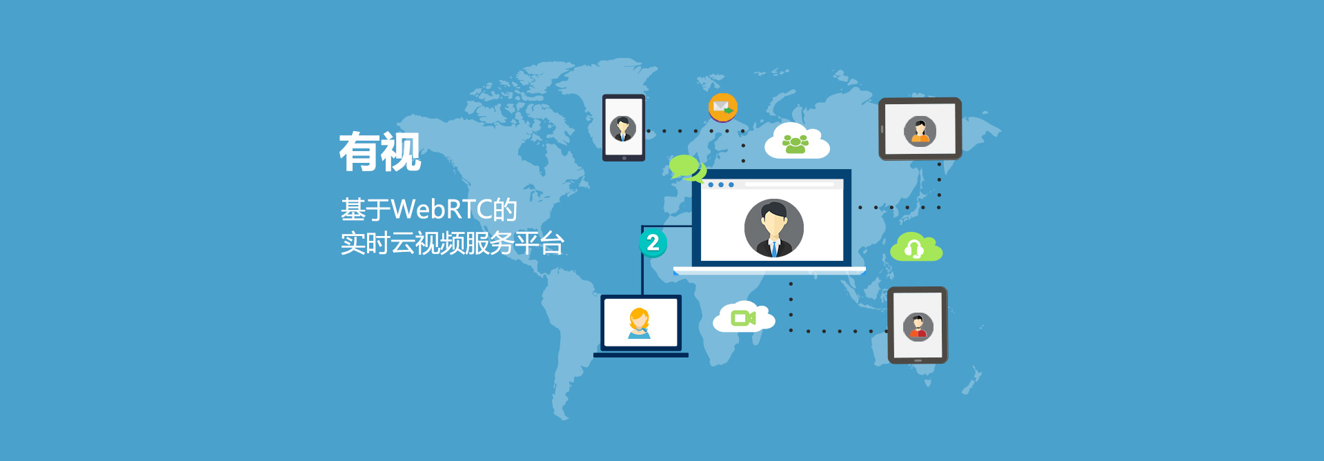 基于WebRTC技術,為開發者和用戶提供基于云端的實時在線交流服務平臺。 以開放API和SDK的方式提供文本信息傳輸、音視頻通話、網絡會議、屏幕共享等功能。
